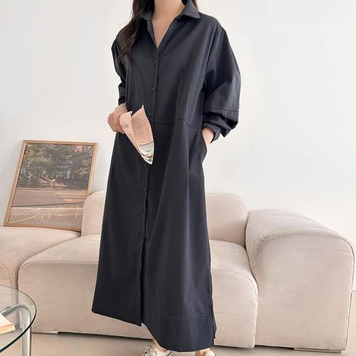 옷자락 / 여자 투웨이 롱셔츠 카라넥 77사이즈 봄 롱원피스