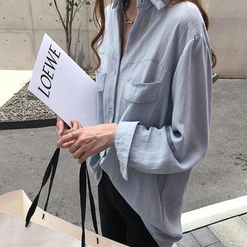 [에이치플러스몰]여자 3컬러 페미닌무드 여유핏 심플 롱셔츠 블라우스