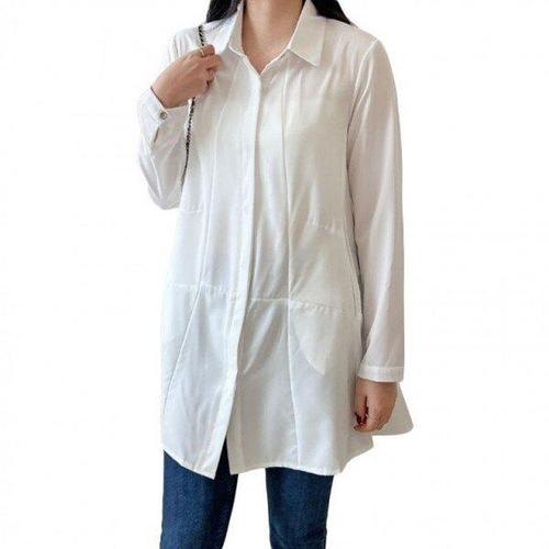 [에이치플러스몰]뒷트임 단추 포인트 여성 베이직한 롱셔츠 코디 흰색