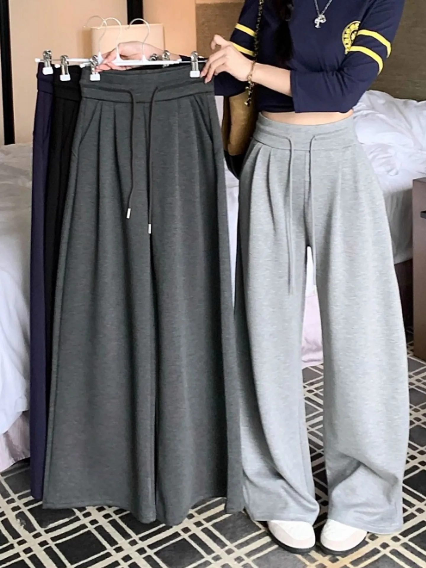 하이웨이스트 와이드 레그 스포츠 팬츠 여성 캐주얼 루즈핏 레이지 스타일 봄 가을 롱 팬츠 스트레이트 컷 슬리밍 효과