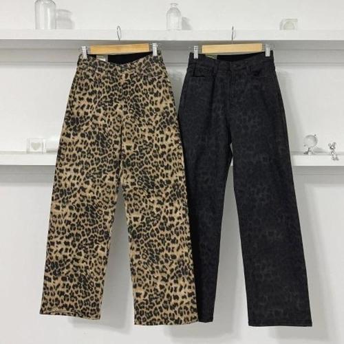 [옷자락] 여자 레오파드 일자핏 스판 히든밴딩 스트릿 면바지