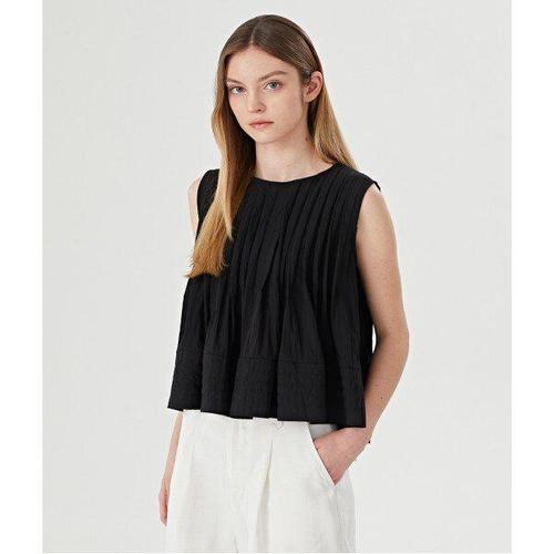 [GGPX]페미닌 라운드 핀턱 민소매 블라우스 (GOBBA028D)