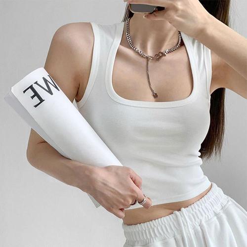 라운드 깔끔한 골지 여성 민소매티 WFIOWRG