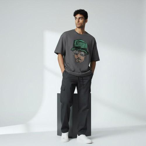 MFNC030023 - 오버핏 100% 면 스마일로고 박스티 박스티