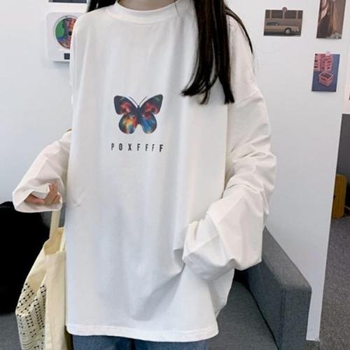 [엄지척]여성 체형커버 박스티 나비 프린트 간절기 긴팔티셔츠_20387139_667501