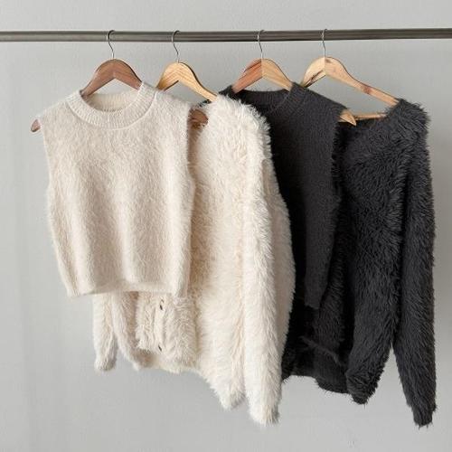 [다잇템][다잇템] 여성 겨울털나시 퍼 카디건 빅사이즈 V넥 세트 시어링 포함_23936398_588872