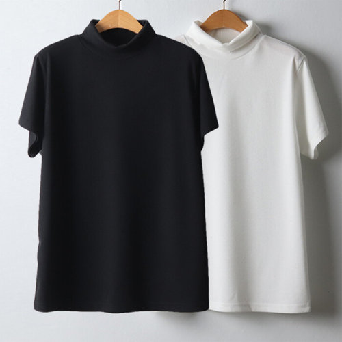 [셀러허브_여성트랜드패션]빅사이즈 601 하이넥폴라무지반팔티 DWXJ369