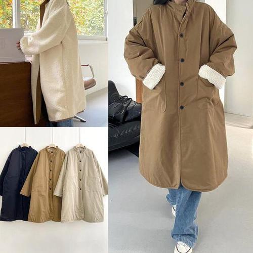 오스틱니 110kg까지 빅사이즈 여성 하프 누빔 순색 패딩 겨울 편한 넥카라 도톰 포켓 단추 보온 솜패딩 웰론 패딩 캐주얼 외출 방한복 부드러운 일상 기본템