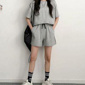 [신상오픈런]여성 크롭 반팔 티셔츠와 밴딩 반바지 여름 트레이닝 세트