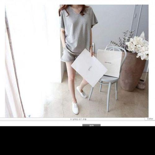 [에이치플러스몰]반팔 1P 라운드넥 여름 반바지 세트 여성트레이닝세트