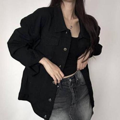 지디오 여성 오버핏 청자켓 긴팔 카라 데님 재킷 레트로 캐주얼 아우터