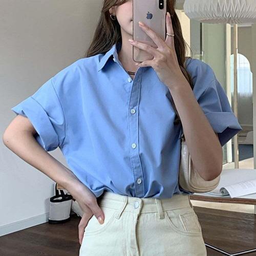 여자여름셔츠 베이직 무지 셔츠 루즈핏 화이트 와이셔츠 스타일리쉬