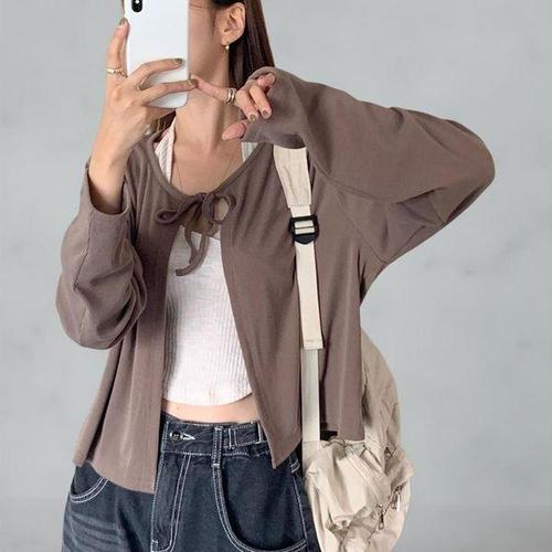 [다잇템]여성 세트 FW 오픈 리본 사이즈 대형 가디건