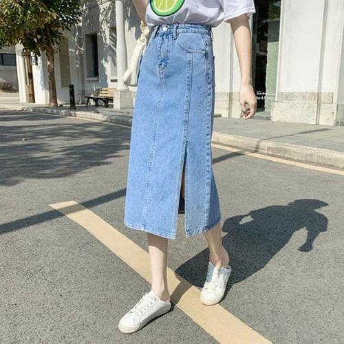 여성 H라인 뒤트임 청치마 롱데님스커트