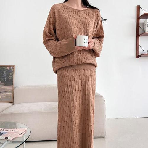 H스타일(SET)케이블니트치마세트 봄 간절기 여성 트레이닝복세트 츄리닝셋트 치마셋업 홈웨어