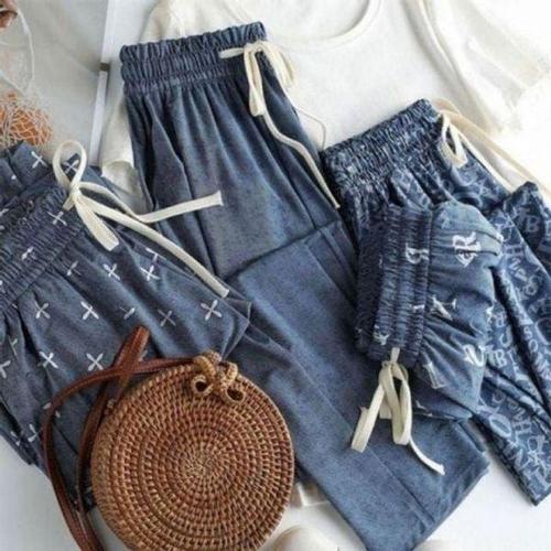 여름 청바지 여성 쿨 와이드 밴딩 팬츠 고무줄 통 홈웨어 여자