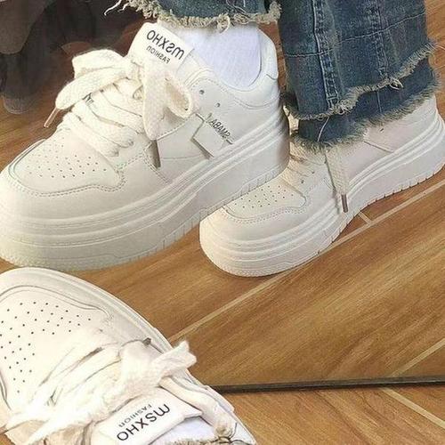KOPN 두꺼운 밑창 운동화 캐주얼화 여성 폭발적인 편안 백합 소프트 밑창 흰 신발 키높이 판화 발 힘들지 않다