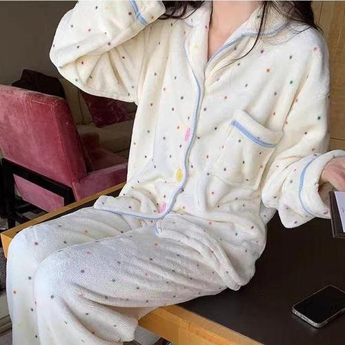 여성파자마세트 포근한잠옷 극세사 상하세트 겨울 WFKPDJ1