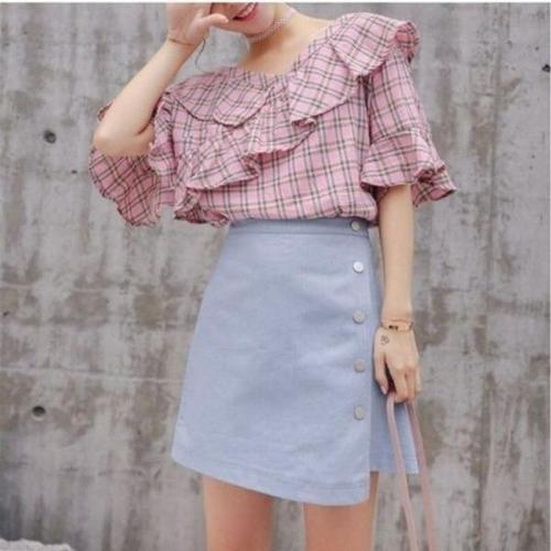 [엄지척]핑크체크 여자옷 여성블라우스 프릴블라우스 메이비굿_19645196_667501