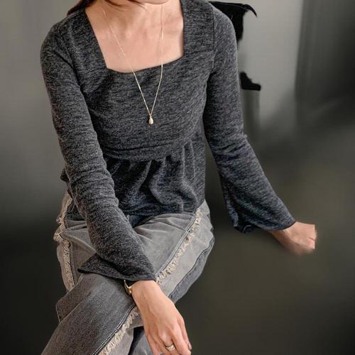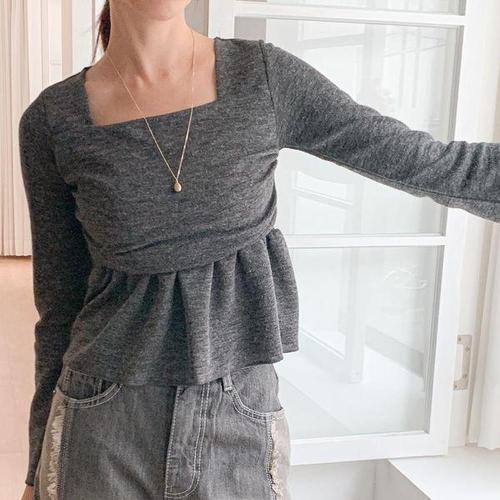 [신상오픈런]여성 스퀘어넥 프릴 레이어드 긴팔 티셔츠
