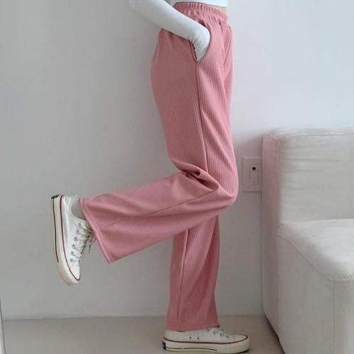 [옷자락]여자 캐쥬얼 플리츠팬츠 분홍색 넓은 고무줄 바지