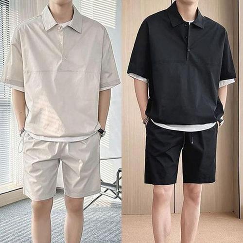 [셀러허브_여성트랜드패션]남자나시 남자카라티셔츠 남자헨리넥반팔 밑단 무지반팔티 카라티 맨투맨 코디