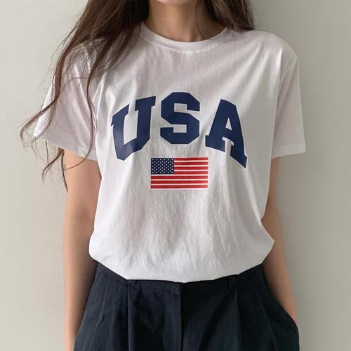 여자 캐주얼 프린팅 흰반팔티 티셔츠