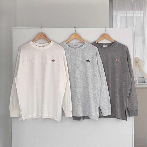[옷자락] 여성 힙커버 긴팔 티셔츠 빅사이즈 라벨 사이드 슬릿 라운드넥 상의