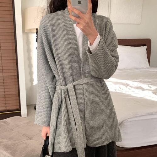 [옷자락] 여성 골지 울 니트 벨트 루즈핏 힙커버 숄 가디건