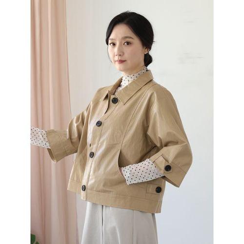 [웬디즈갤러리]7부 카라 페이크 레더 자켓 /여성 간절기 레자 셔츠형 UJK103