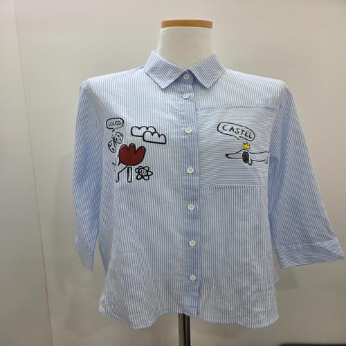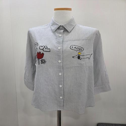 ROYALBELLE 여성 자수 7부소매 카라 버튼 루즈핏 베이직 심플 셔츠 K0020322