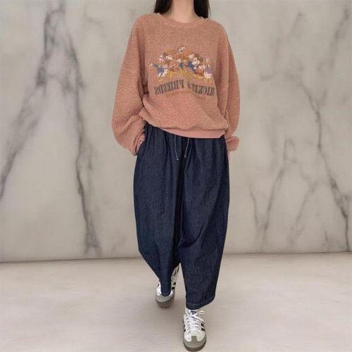 [옷자락] 여성 키치 스타일 비스코스 벌룬핏 9부 청바지