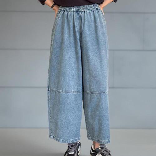 [옷자락]여성 가을 의류 절개 벌룬 와이드핏 9부 통밴드 청바지