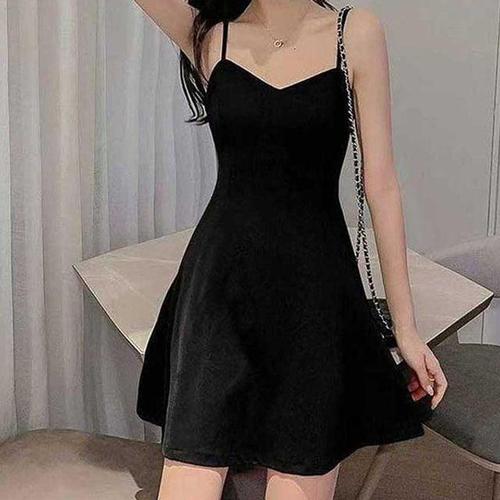 심플슬림 블랙 미니 끈원피스 여신핏 데이트룩 WFK82BX