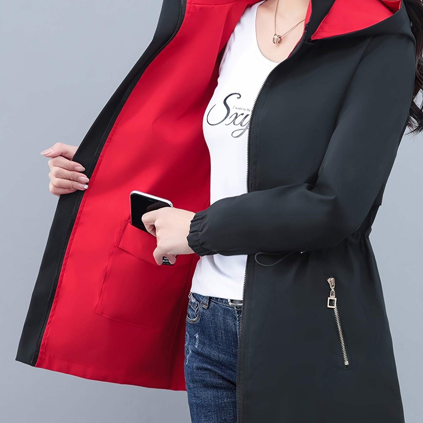TEMU 여성용 양면 트렌치 코트, 미디 길이, 스타일리시하고 루즈핏의 캐주얼 탑 (2024년 봄/가을)