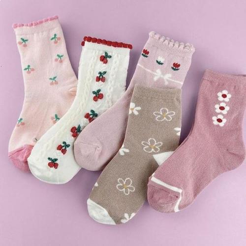 워더미 여아용 러블리 플라워 사계절 중목 양말 5켤레세트 X8021