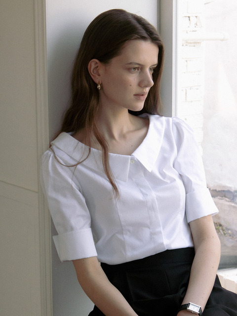 정상가 59000원ㅣ 에브리데이]페미닌 브이넥 노카라 긴팔 셔츠 (EB2BA003D)