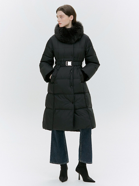 [하시에] 스퀘어 퀼팅 폭스퍼 구스다운 롱 코트