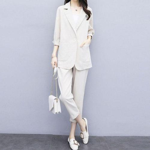 여성 여름 봄 자켓 점퍼 정장 세트 바지 투피스 셋업 정장자켓 린넨 반팔 브랜드