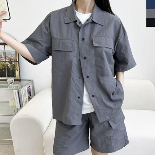 [옷자락]여자 아노락 오버핏 트레이닝 반팔 반바지 세트