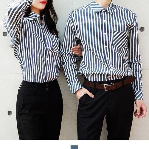 [에이치플러스몰]여자청남방 여자셔츠 빅사이즈 룩 남자스트라이프