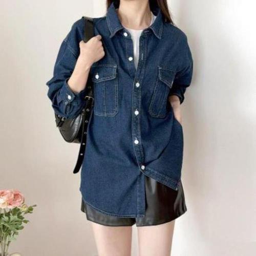 베이직 여성 남방 빈티지 진청 데님 청 셔츠 LK-J006