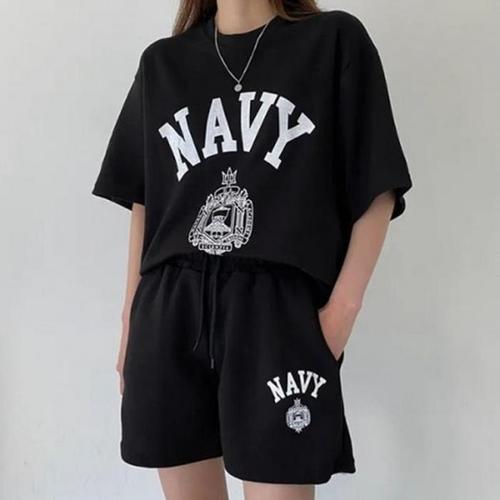 잇츠심플 파리스 레터링 라운드 반팔 조거 트레이닝복 세트
