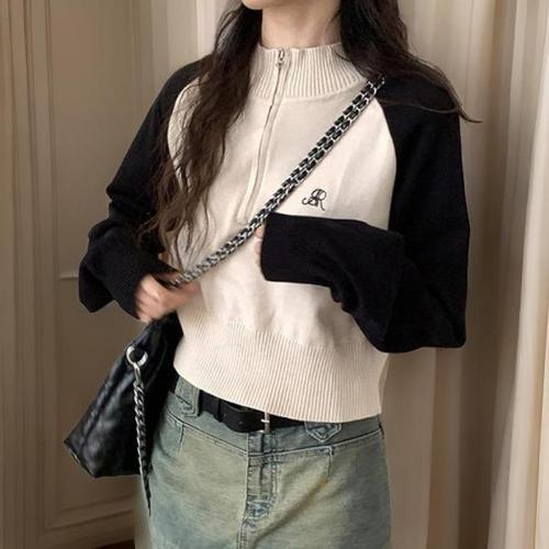 [다잇템][다잇템] 여자 자수로고 콘트라스트 하프집업 레글런 긴팔티_20585586_588872