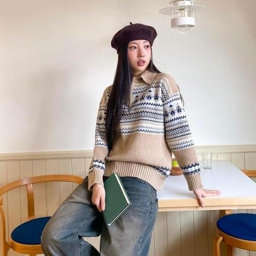 [다잇템][다잇템] 여자 카라넥 FW 그래픽 윈터 하프집업 노르딕 니트_19251983_588872