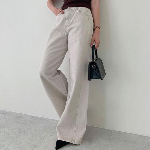 [HYIJMRL9_4B]여자 데님팬츠 세미 와이드 화이트 통 청바지