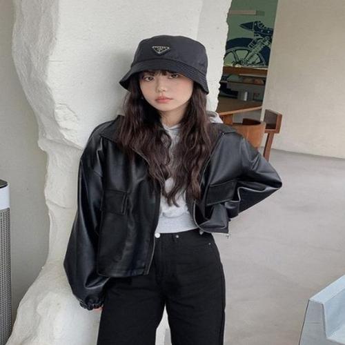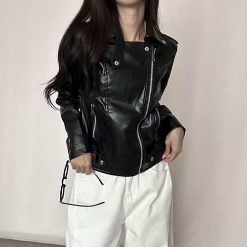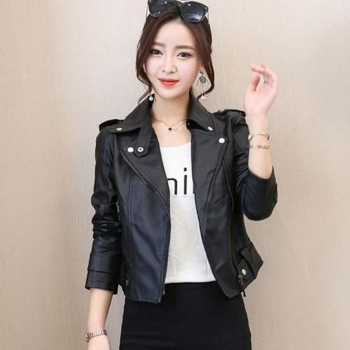 마켓피아 여성용 봄가을 가죽 레더 숏 자켓