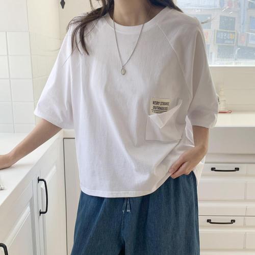 [옷자락]여자 레터링 포켓 나그랑 오버핏 데일리 반팔티