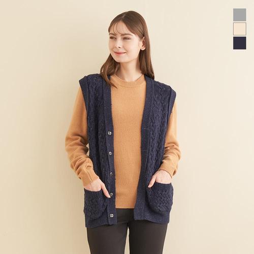 마인드재뉴에어리 루즈핏 여성 레이어드 니트 베스트 조끼