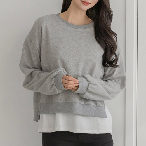 [패션시그널] 라운드맨투맨 레이어드 셔츠블라우스 C262CC
